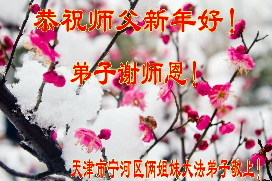 天津市倆姐妹大法弟子恭祝慈悲偉大的師尊新年好!