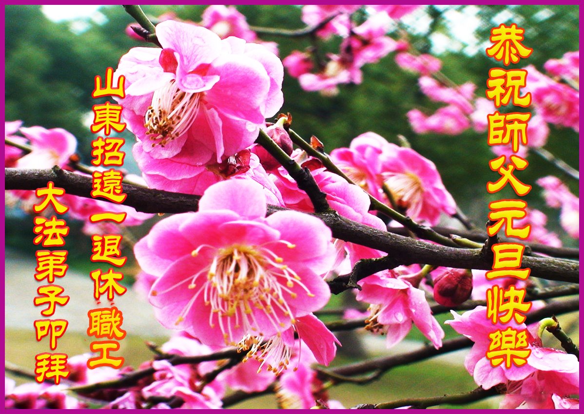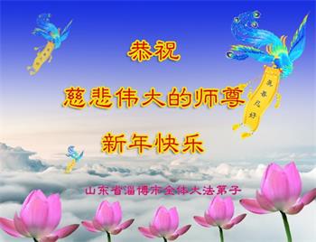 山東煙台開發區一學法小組大法弟子祝慈悲偉大的師父新年好!在新的一年裏弟子們多學法,溶於法中,做好三件事,多救度世人,讓師父多一份欣慰。