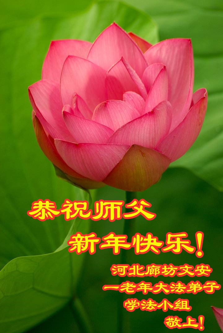 河北廊坊文安一老年大法弟子學法小組大法弟子恭祝師父新年快樂!