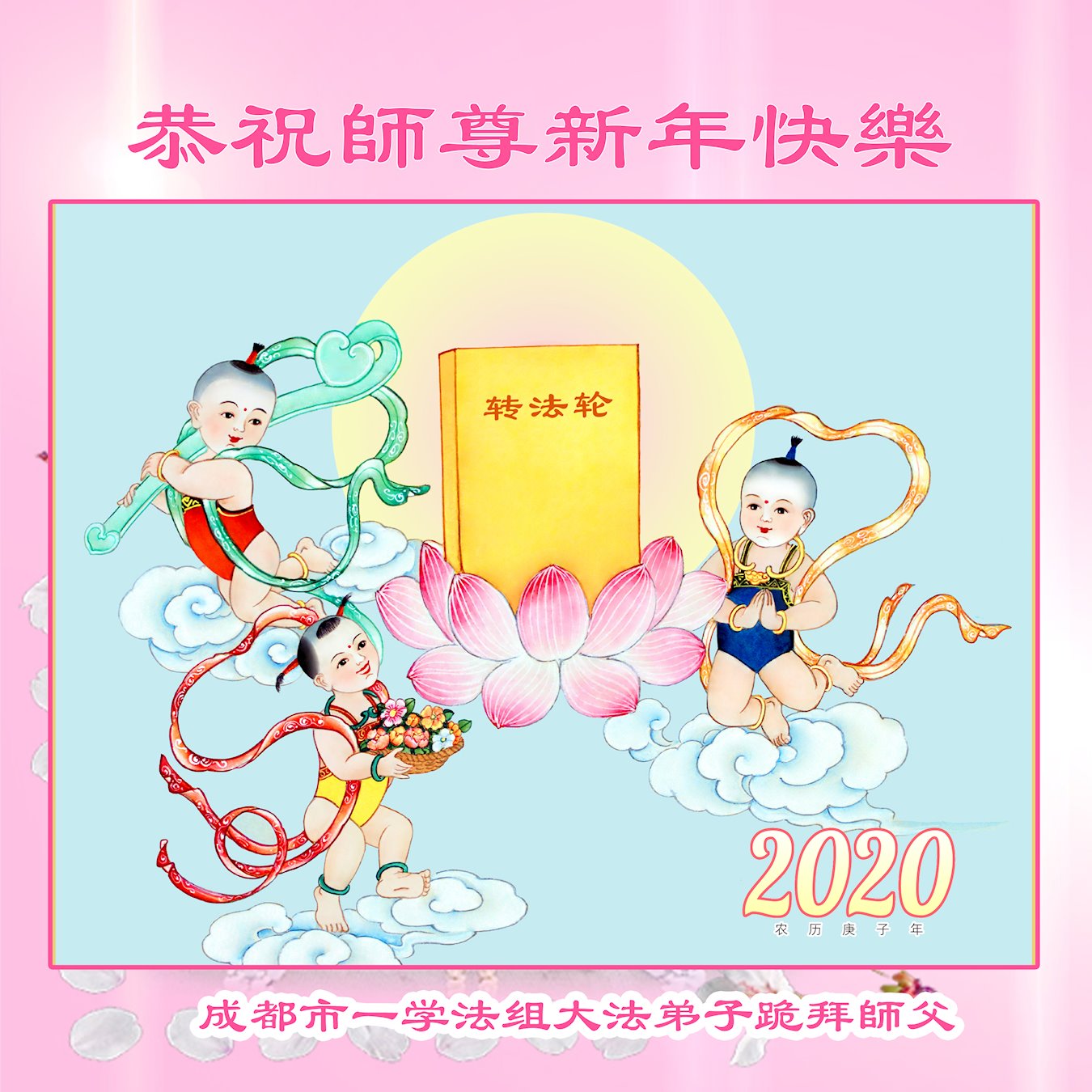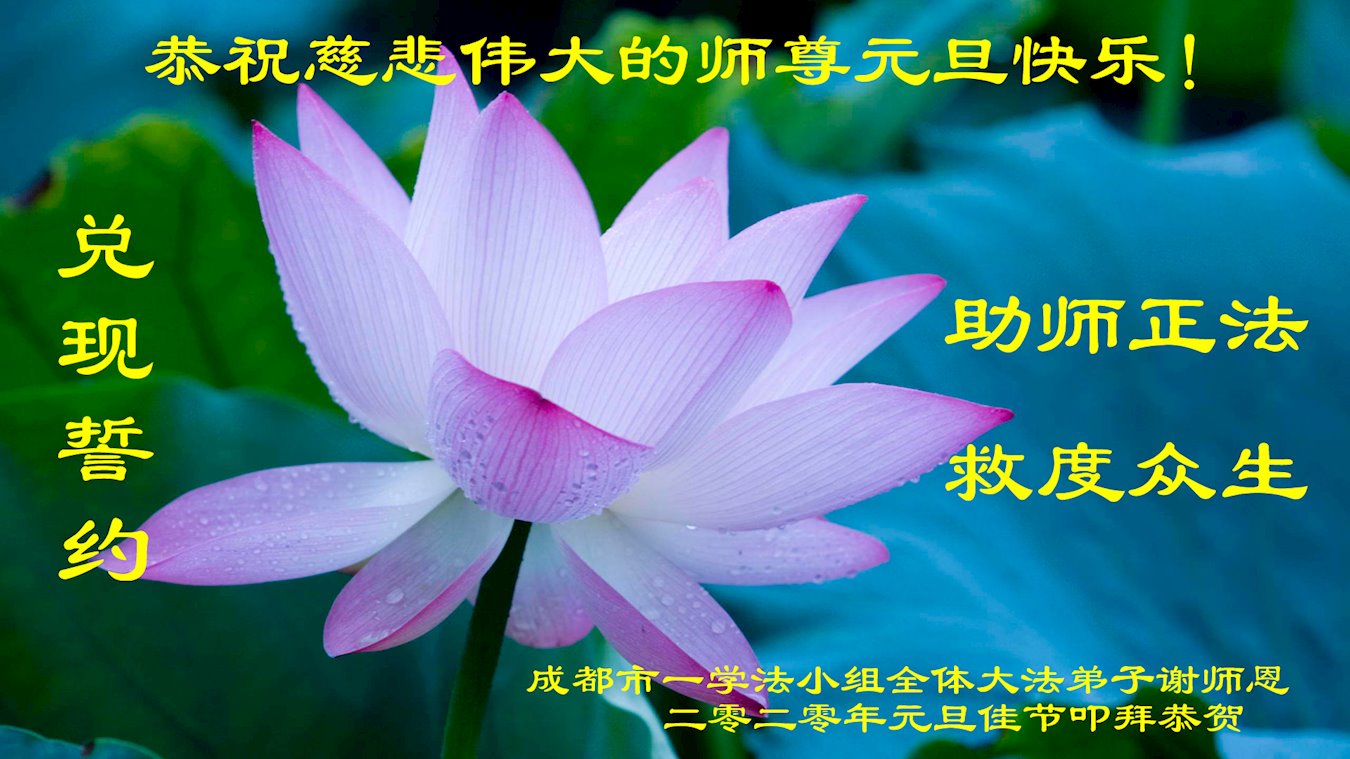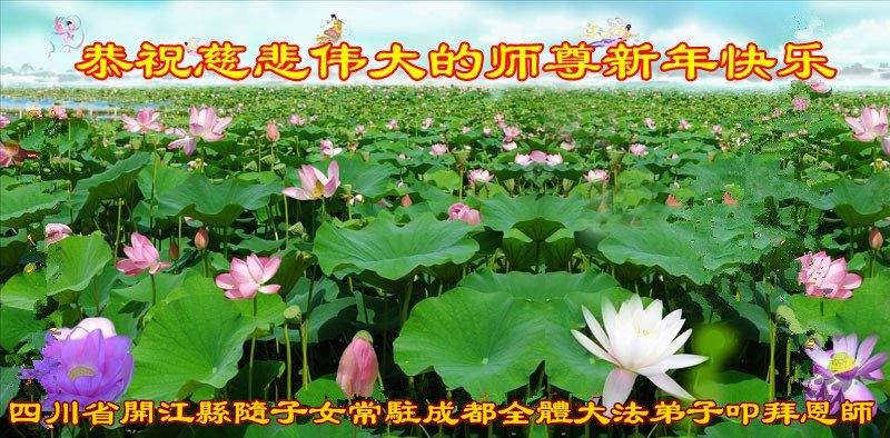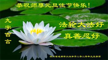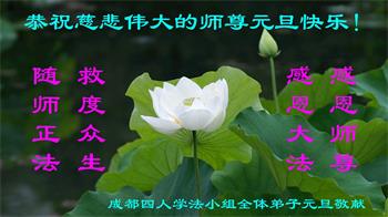 四川成都市一學法組大法弟子向慈悲偉大的師尊新年快樂!