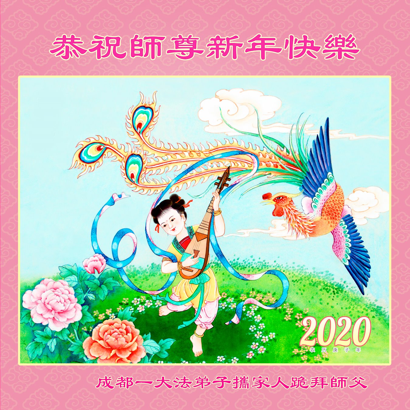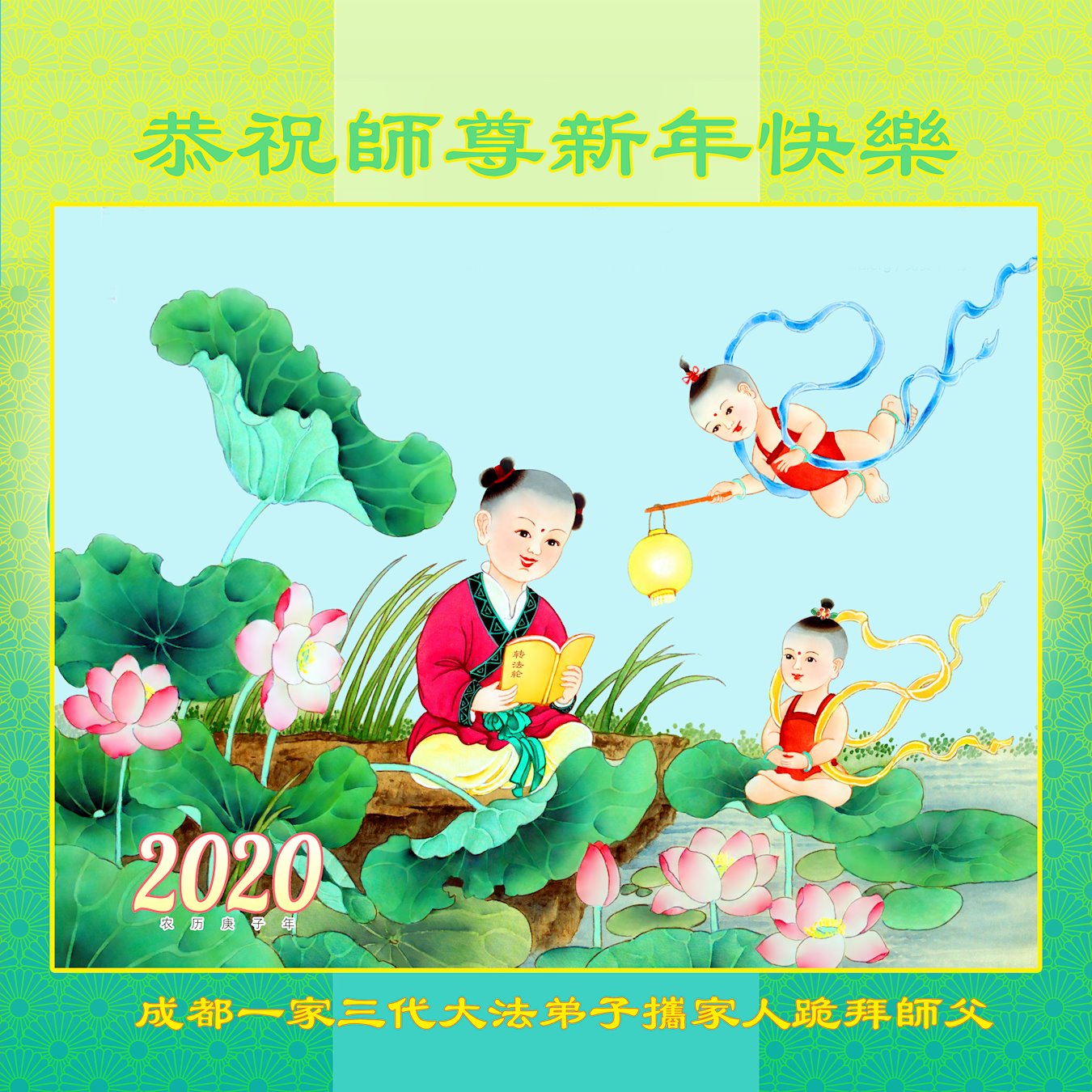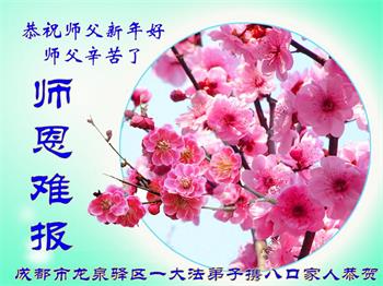 四川成都市一大法弟子攜家人恭祝慈悲偉大的師尊新年快樂!