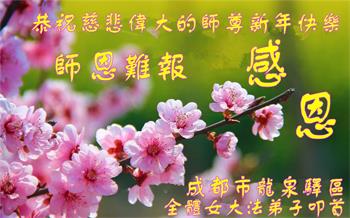 四川省成都市龍泉驛區全體女大法弟子恭祝慈悲偉大的師尊新年快樂!師恩難報!