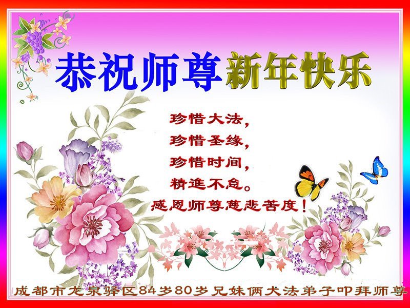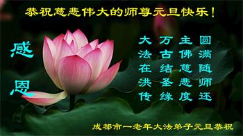 四川省成都市一老年大法弟子恭祝師尊元旦快樂!