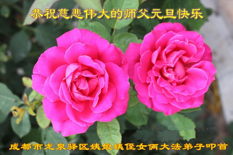 四川省成都市龍泉驛區姨娘姨姪女倆大法弟子恭祝慈悲偉大的師父元旦快樂!