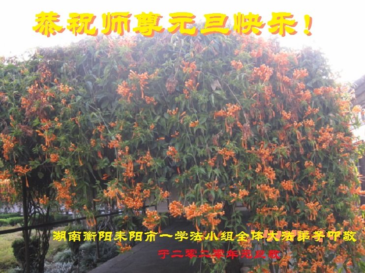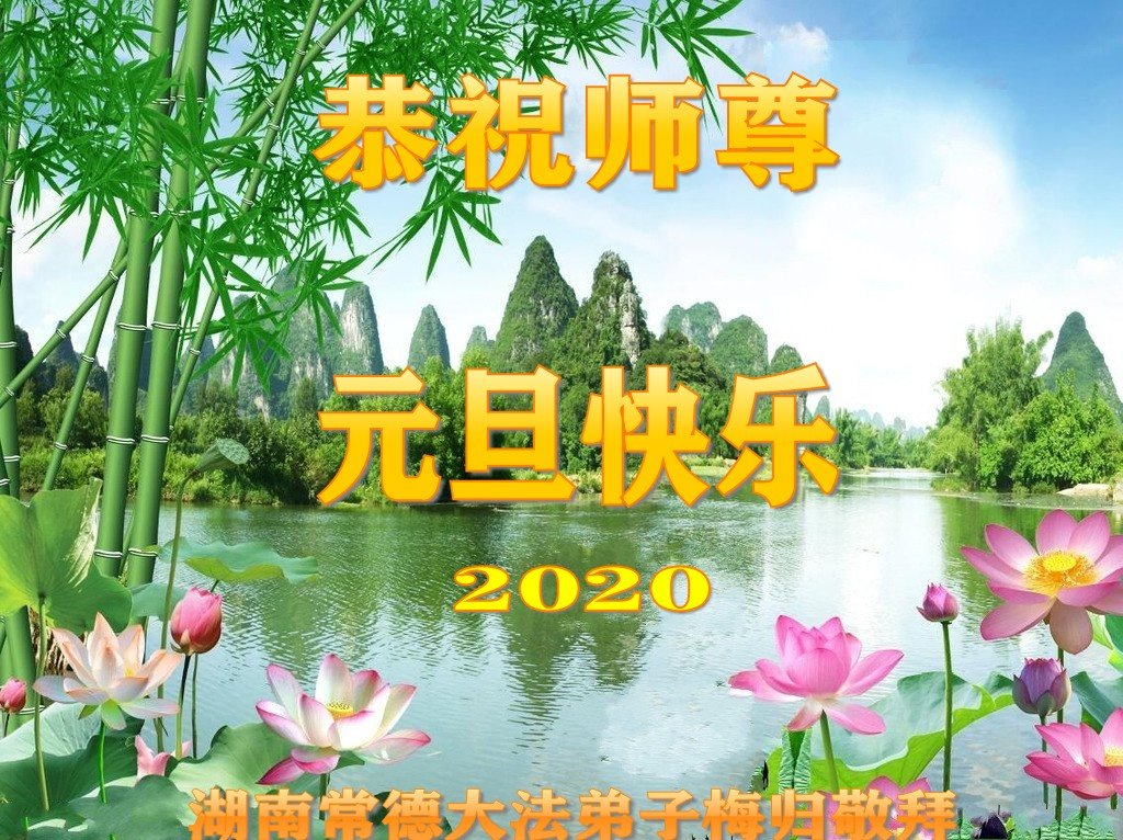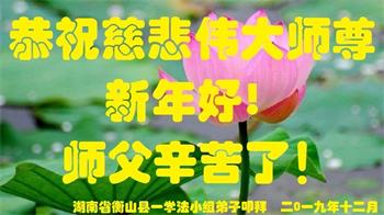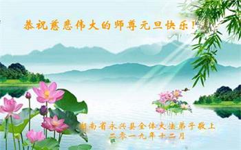 值此二零二零年元旦即將到來之際,我們湖南省永興縣全體大法弟子感謝師尊慈悲救度之恩,恭祝師尊元旦快樂!師尊辛苦了!在新的一年裏,弟子要更加精進。按照師父的要求做好三件事,兌現誓約,完成使命。助師正法,直至圓滿隨師還!