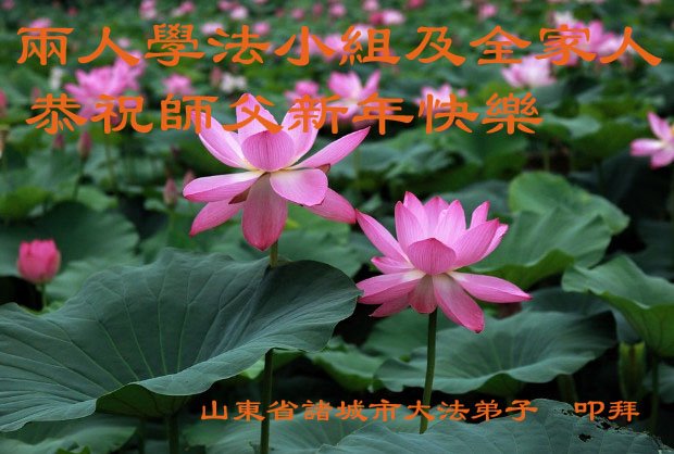 山東省濰坊市諸城市兩人學法小組大法弟子及全家人恭祝慈悲偉大的師父新年快樂!