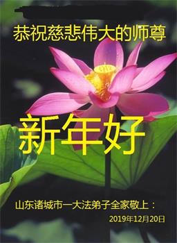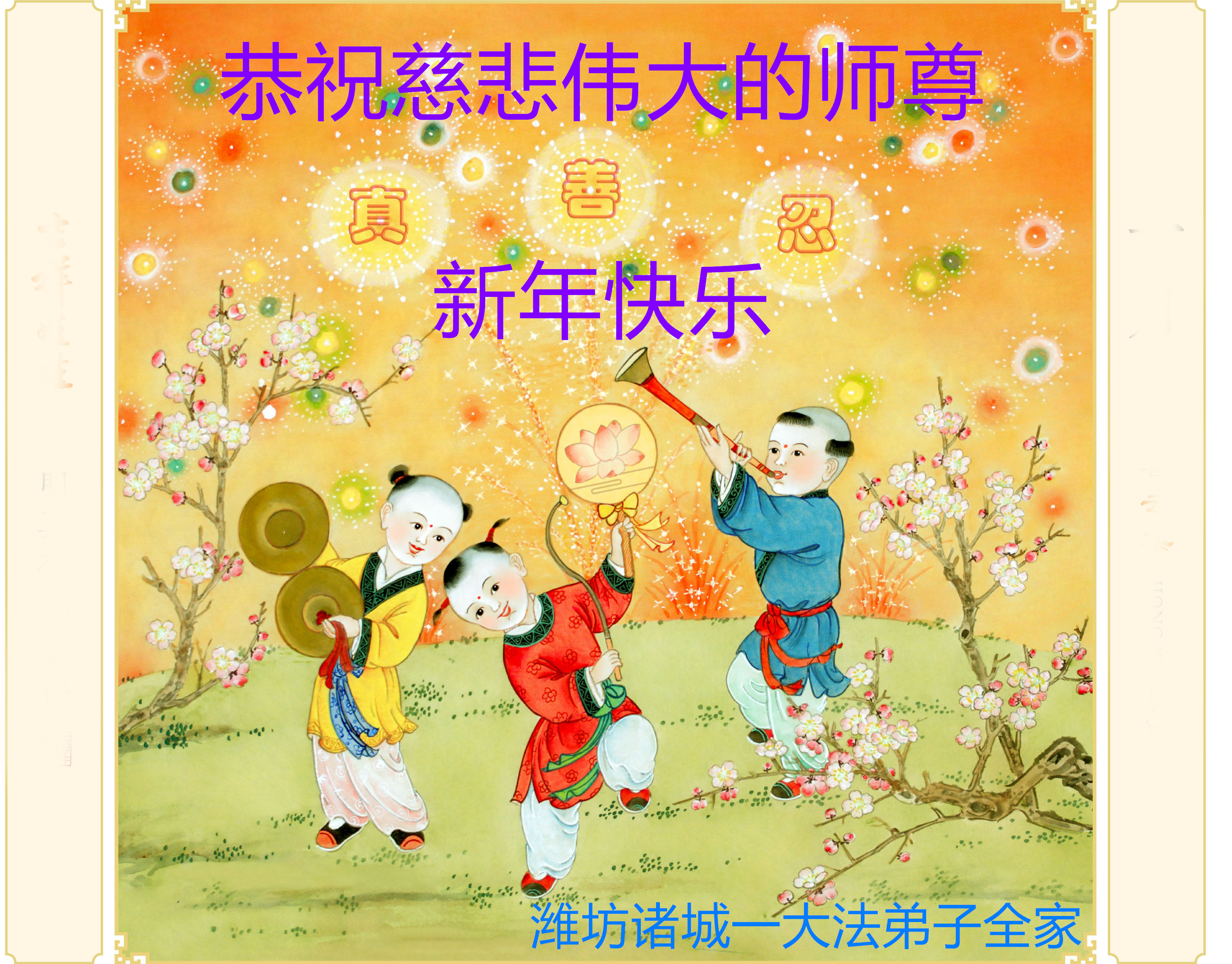 山東省濰坊市諸城一大法弟子全家恭祝慈悲偉大的師尊新年快樂!