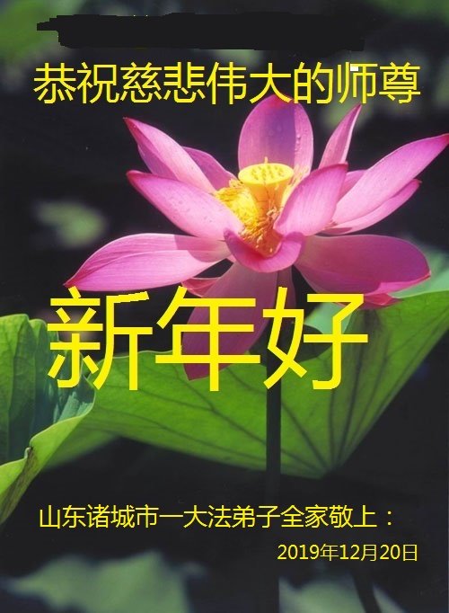 山東省濰坊市諸城市一大法弟子全家恭祝慈悲偉大的師尊新年好!