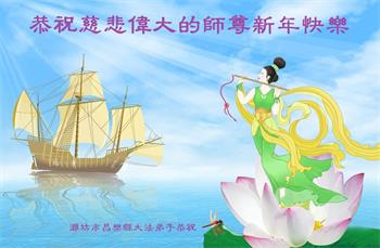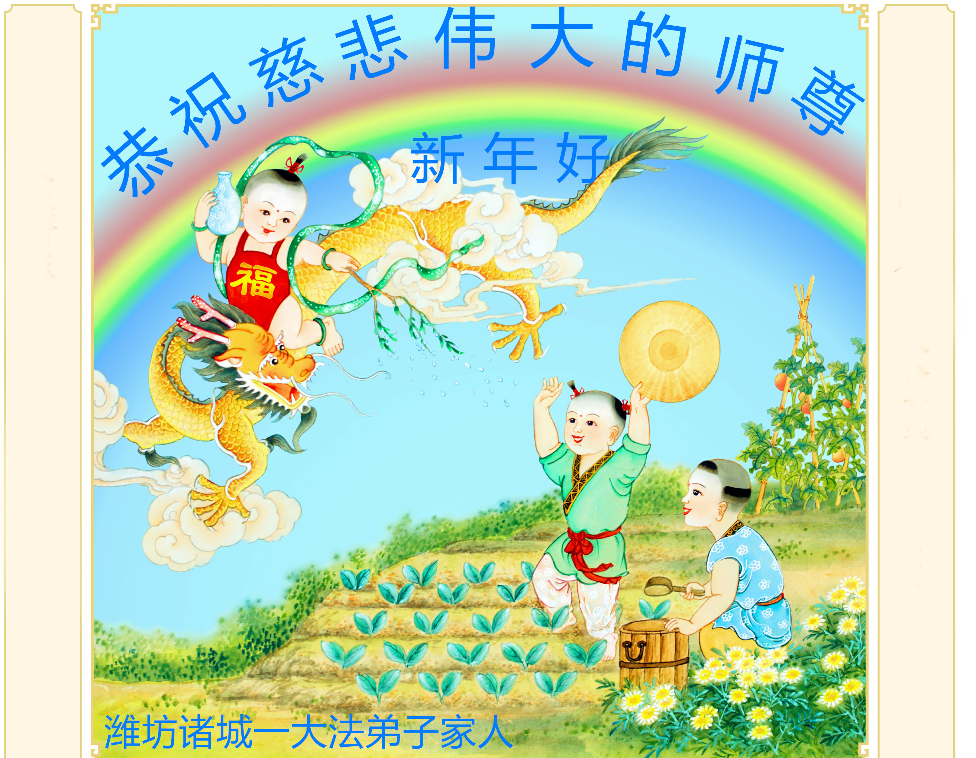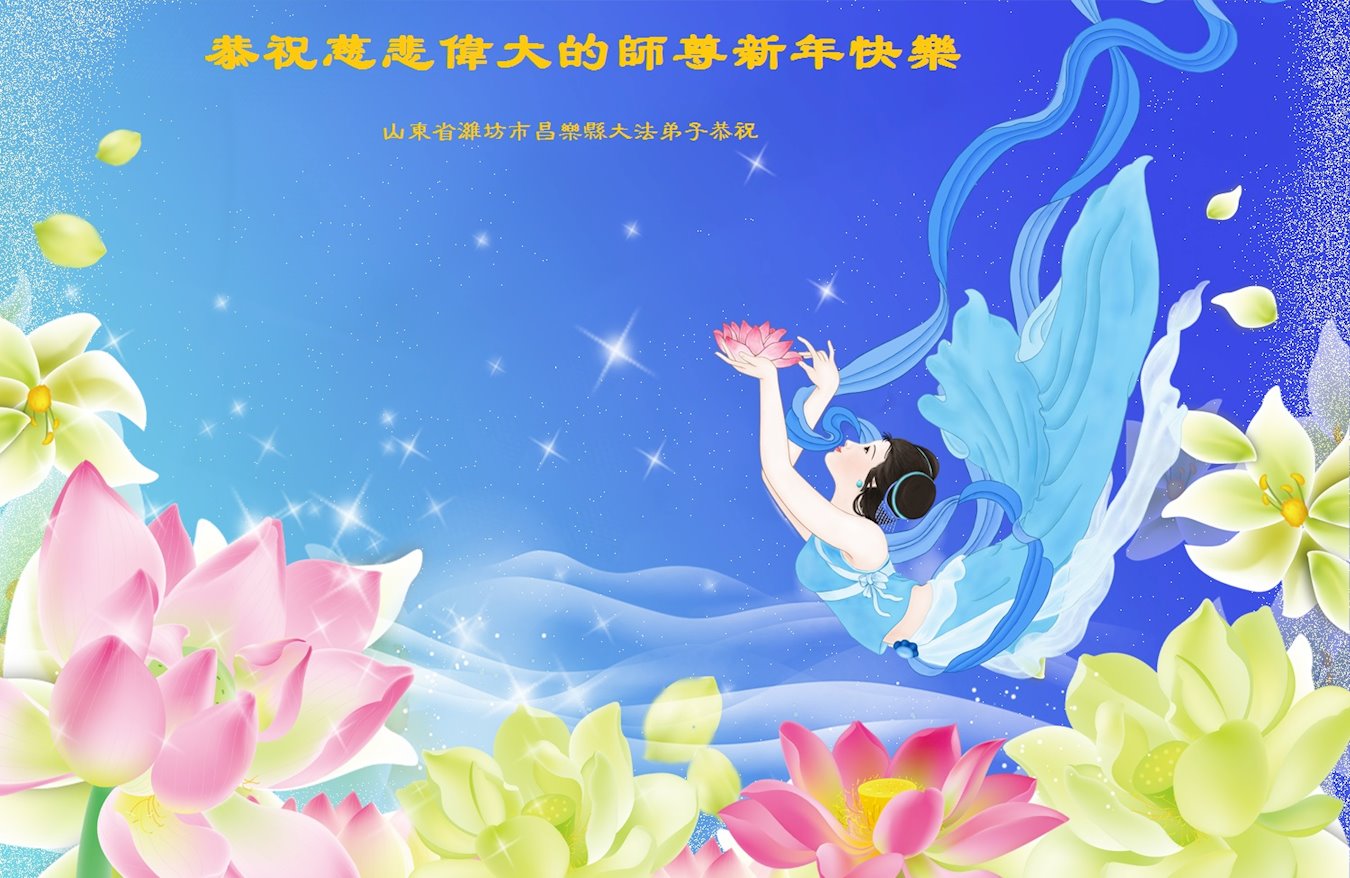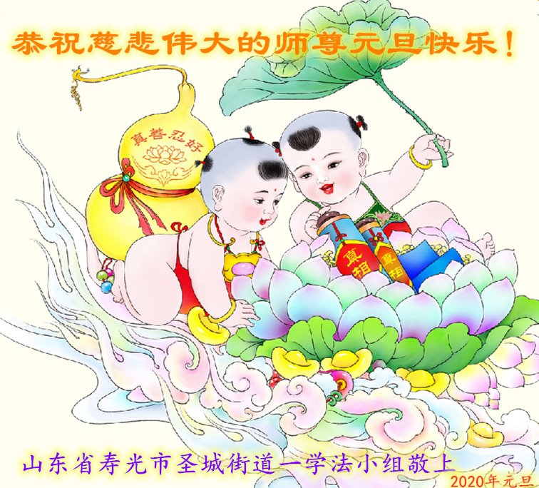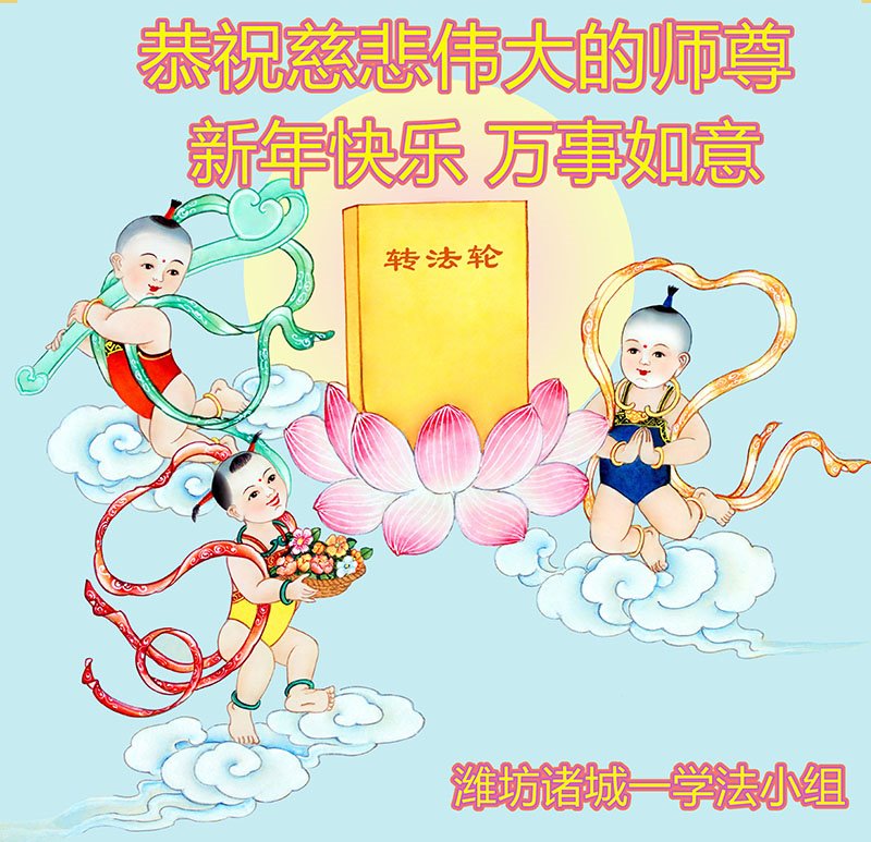 山東省濰坊市一學法小組大法弟子恭祝師尊新年快樂!