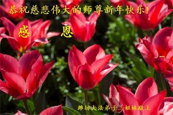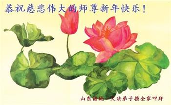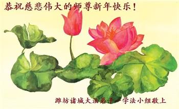 山東濰坊大法弟子恭賀偉大的師尊新年快樂!