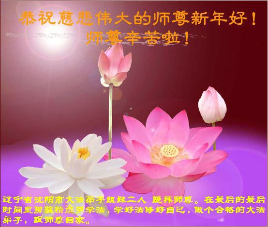 瀋陽大法弟子恭祝師尊新年快樂!弟子一定按照師尊要求踏踏實實修好自己,做好三件事,兌現自己的誓約,圓滿隨師還!