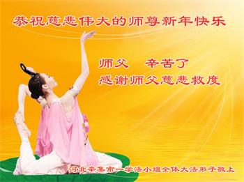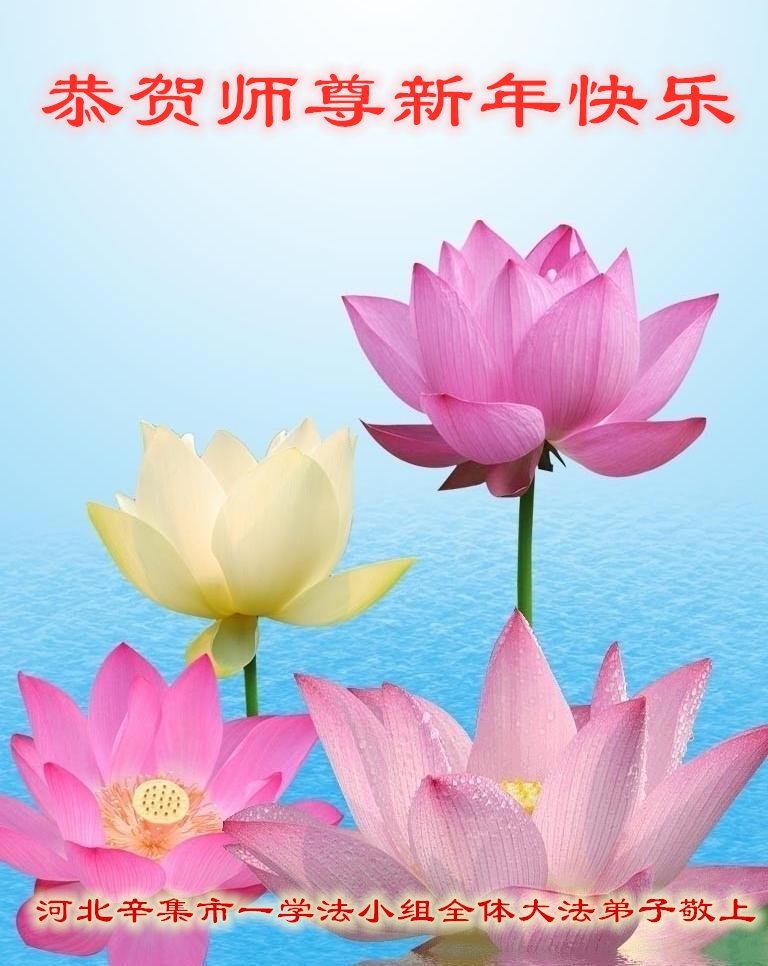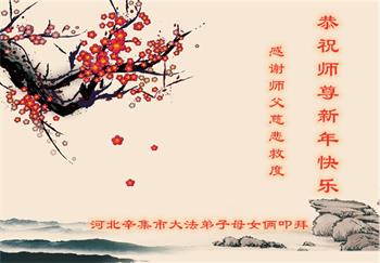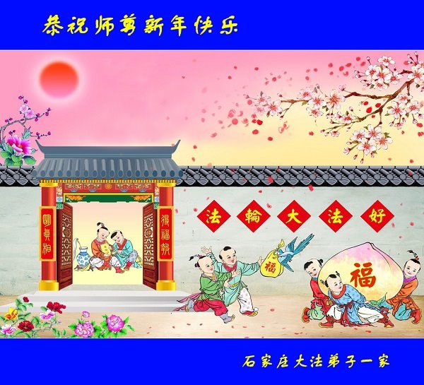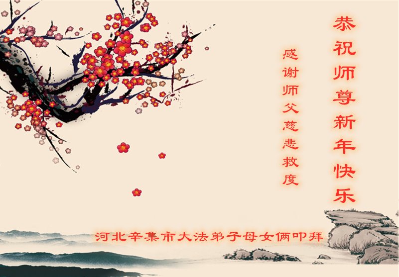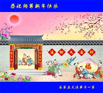 石家莊農行宿舍大法弟子攜支持我的丈夫、兒子、女兒共同恭祝師父元旦快樂!