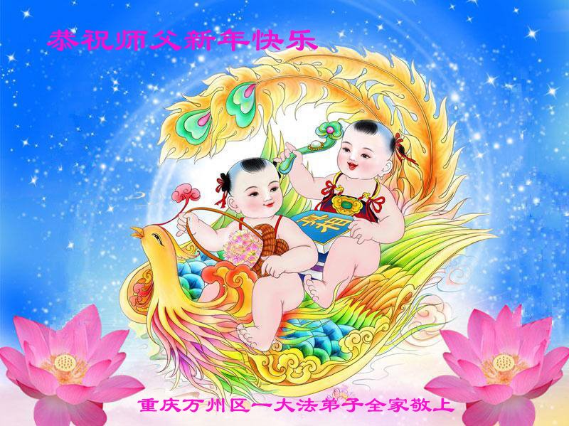 重慶萬州區一大法弟子全家恭祝師父新年快樂!