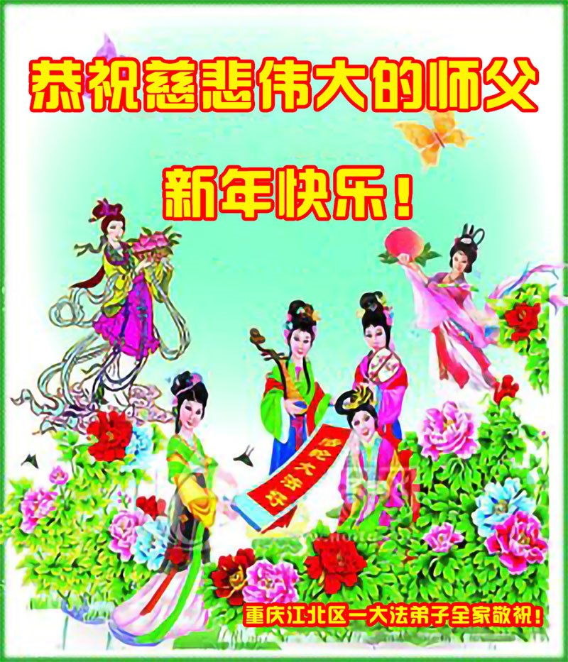 重慶江北區一大法弟子全家恭祝慈悲偉大的師父新年快樂!