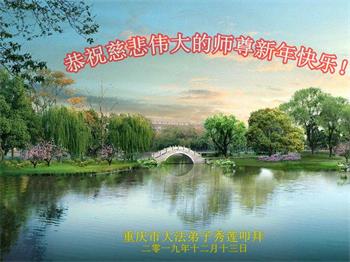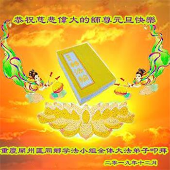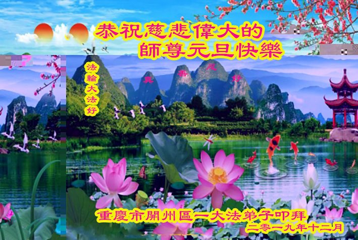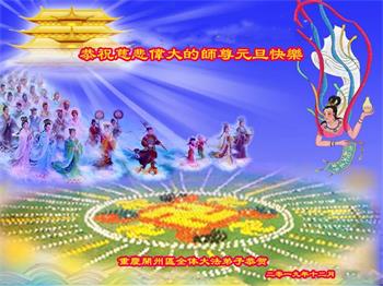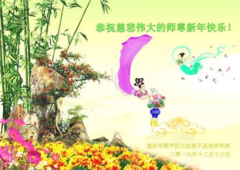 尊敬的師父您好!在新的一年到來之際,我們學法組全體大法弟子送上一張,恭祝師父新年快樂!