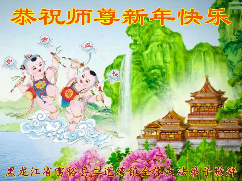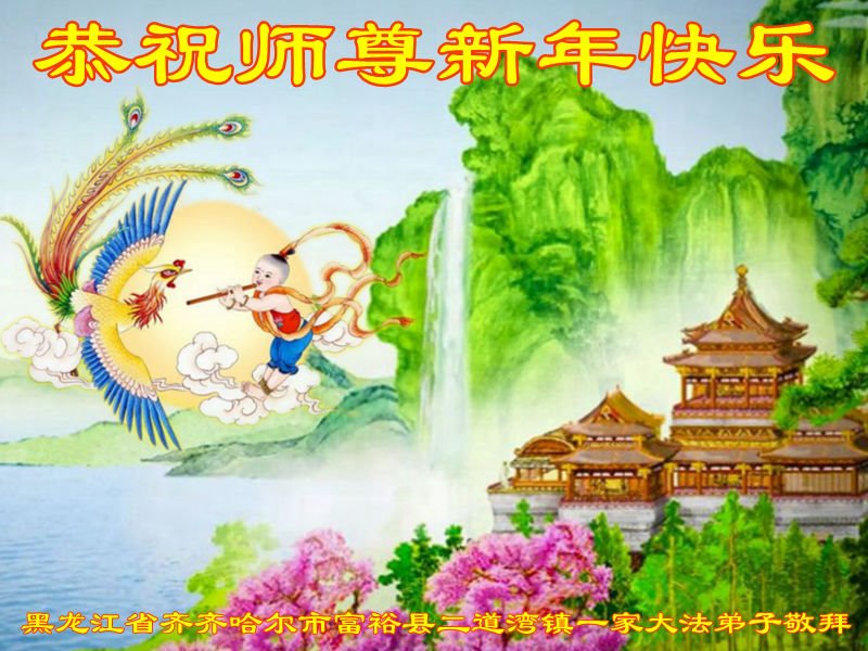 黑龍江省齊齊哈爾市富裕縣二道灣鎮全體大法弟子恭祝師尊新年快樂!叩謝師父的慈悲救度!