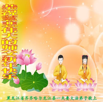 黑龍江省齊齊哈爾龍江縣一夫妻大法弟子恭祝慈悲偉大的師父新年快樂!