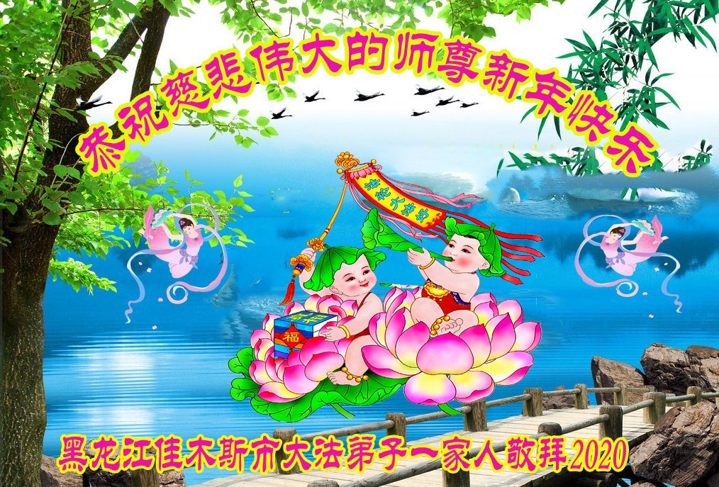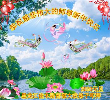 黑龍江省佳木斯東一小組大法弟子恭祝師尊新年快樂!