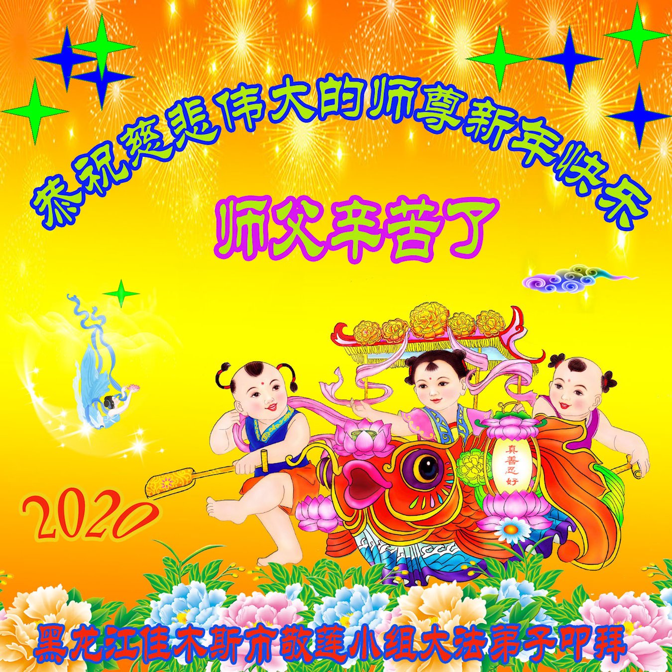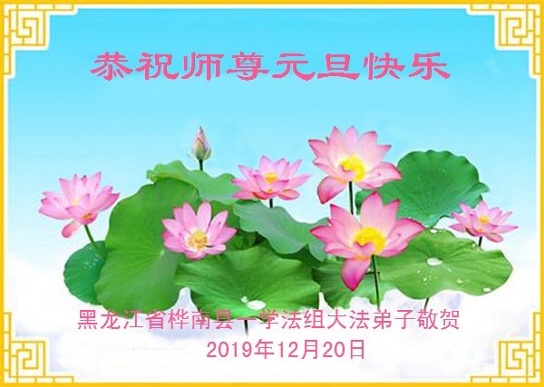 黑龍江佳木斯市敬蓮小組大法弟子恭祝師尊新年快樂!