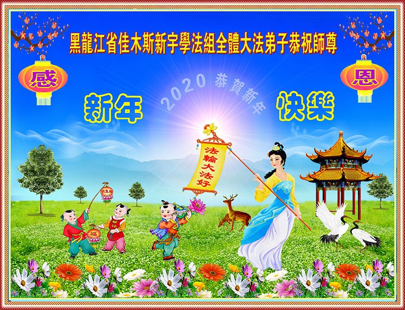 黑龍江省佳木斯地區新宇學法組全體大法弟子恭祝師尊新年快樂!