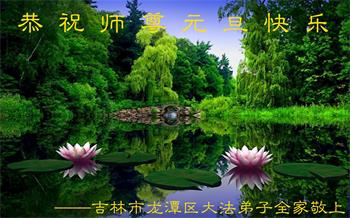 吉林省吉林市龍潭區一大法弟子全家恭祝師尊元旦快樂!
