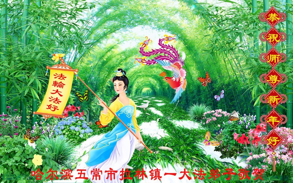 黑龍江省哈爾濱五常市拉林鎮一大法弟子恭祝師尊新年快樂!