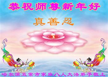 黑龍江省哈爾濱五常市家族八人大法弟子恭祝師尊新年快樂!