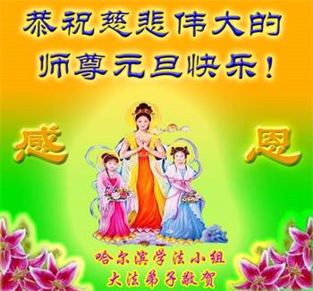 黑龍江哈爾濱學法小組大法弟子恭祝師尊新年快樂!