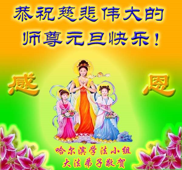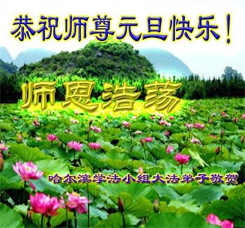 黑龍江哈爾濱學法小組大法弟子恭祝慈悲偉大的師尊元旦快樂!