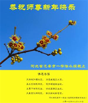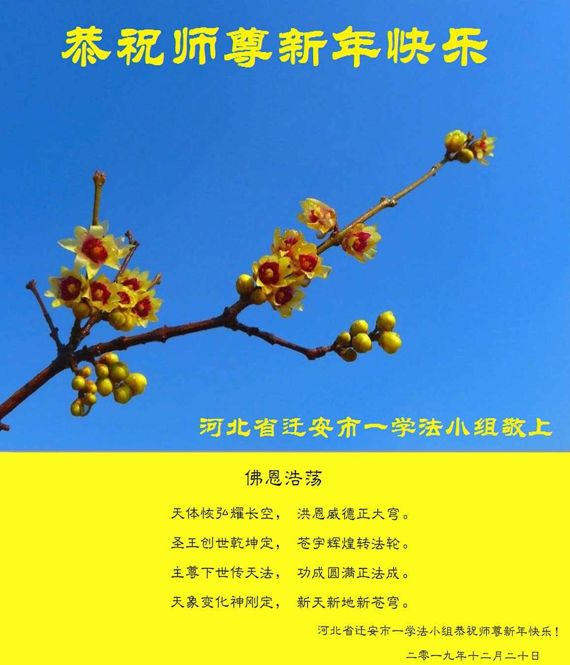 時間飛逝,轉眼又是一年。在這舊宇更新新紀元即將開啟之際,河北唐山大法弟子恭祝慈悲偉大的師尊新年快樂!