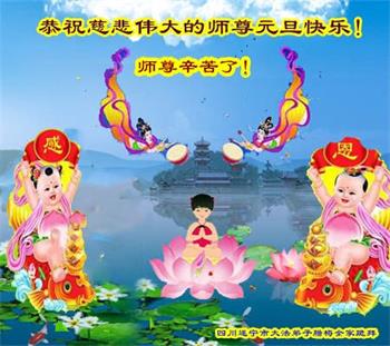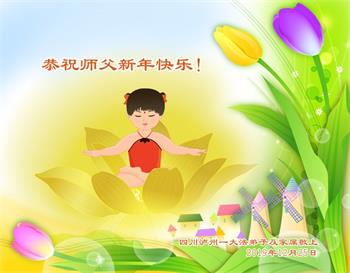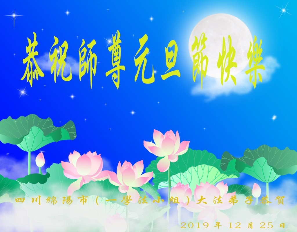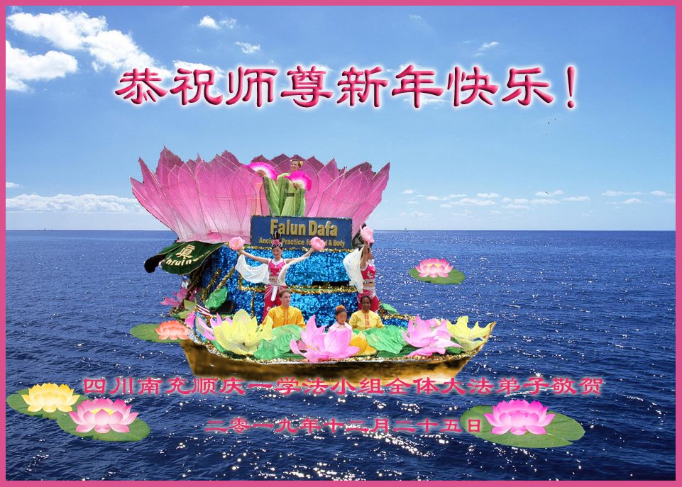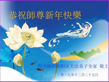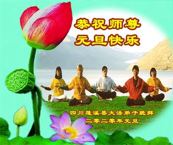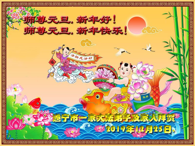 值此2020年元旦、新年到來之際,我們遂寧市一家大法弟子及家人,向慈悲偉大的師尊致以元旦、新年的問候,並向師尊拜賀新年! 問候師尊新年好! 師尊元旦快樂!感恩師尊為成就大法弟子,為救度眾生的艱苦付出和無量承受!感恩師尊慈悲救度,慈悲保護!