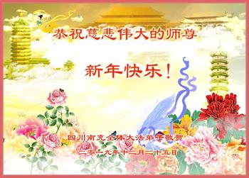 弟子在新的一年裏一定多學法,學好法、遇事向內找,修好自己、多救眾生,不辱使命、兌現誓約,回報師尊的慈悲救度之恩!