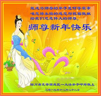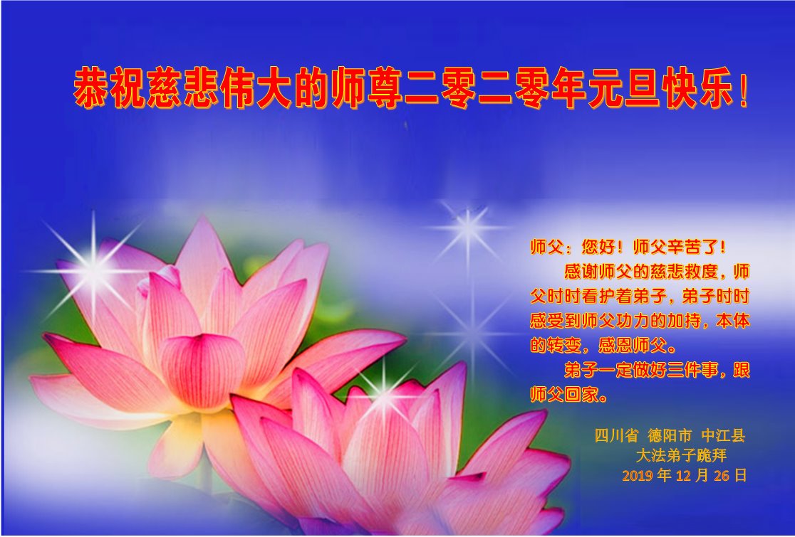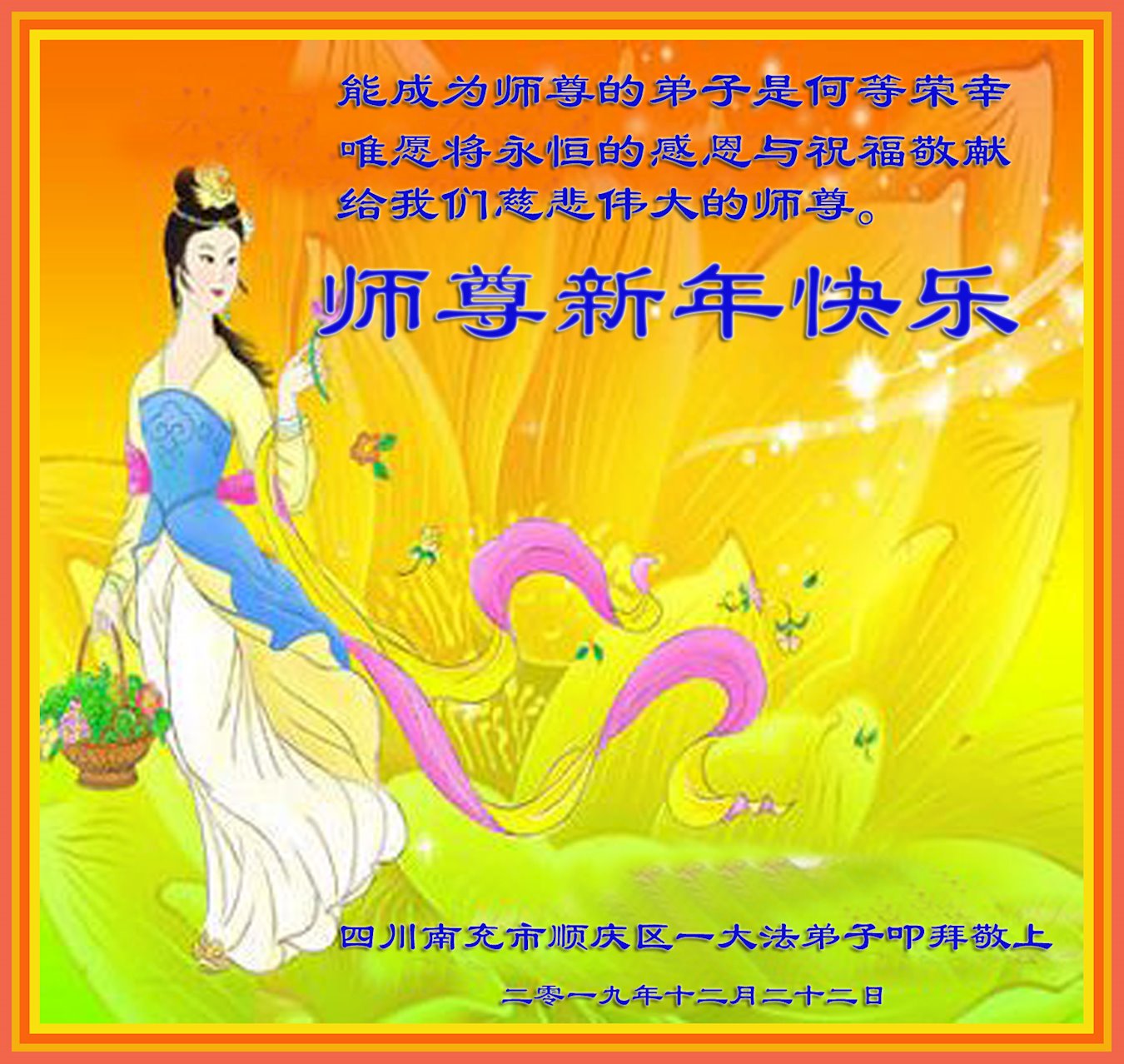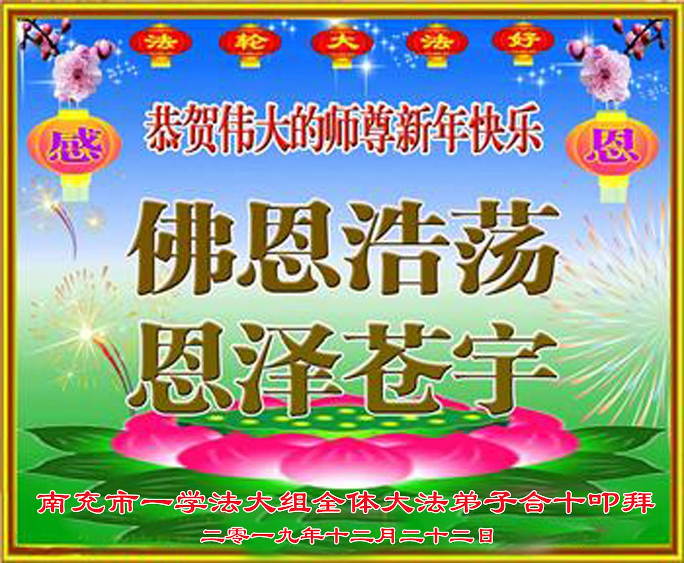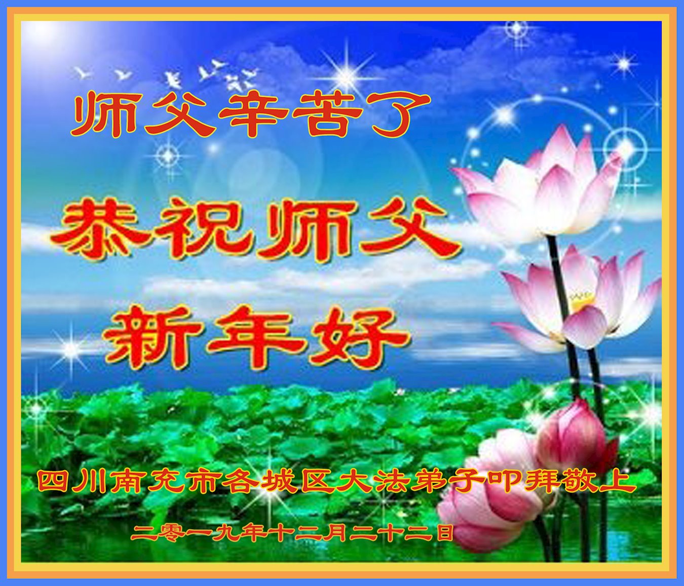 在這辭舊迎新、闔家團圓之際,我們四川省閬中市全體大法弟子更加想念師尊。在此我們懷著對師尊最最崇敬的心情雙手合十,向師尊叩拜,恭祝師尊新年快樂!