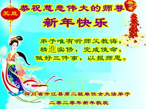 師尊您辛苦了!在新的一年裏,我們一定整體配合好,做好大法弟子該做的事,走正、走好最後的修煉路,圓滿隨師還。弟子叩拜!