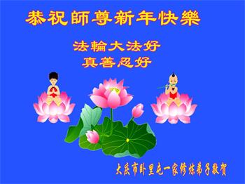黑龍江省大慶市臥裏屯一家修煉弟子恭祝師尊新年快樂!