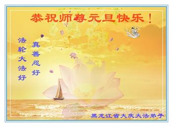 黑龍江省大慶市臥裏屯一學法組大法弟子恭祝師尊新年