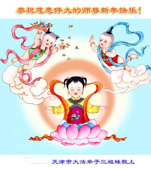 天津市大法弟子三姐妹恭祝慈悲偉大的師尊新年快樂!