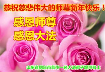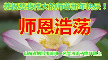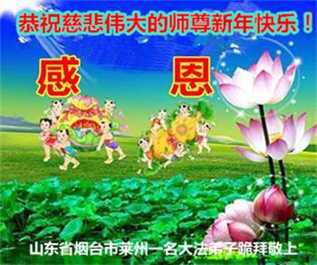 山東省煙台市萊州一名大法弟子恭祝慈悲偉大的師尊新年快樂!
