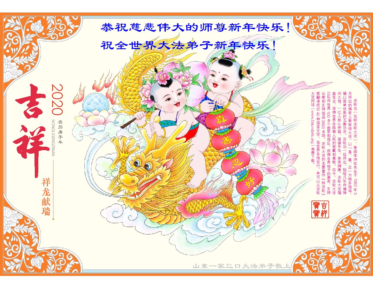 山東一家三口大法弟子恭祝師尊新年快樂!
