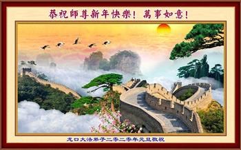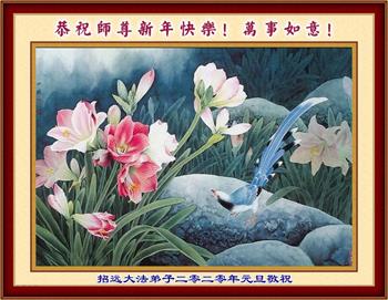 敬謝師恩!在新的一年裏,我們一定要按照師尊的要求做好三件事,珍惜師尊正法結束前很有限的救人的時間,形成一個堅強的整體,多多的救人,讓我們以自己的實際行動來報答師尊的救度之洪恩!