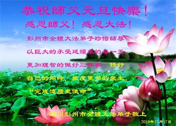 四川省成都市彭州市全體大法弟子恭祝師父元旦快樂!
