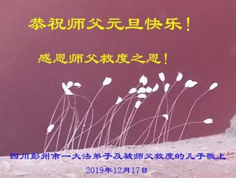 四川省成都市彭州市一大法弟子及被師父救度的兒子恭祝師父元旦快樂!