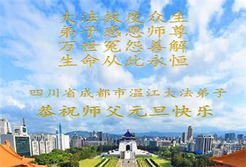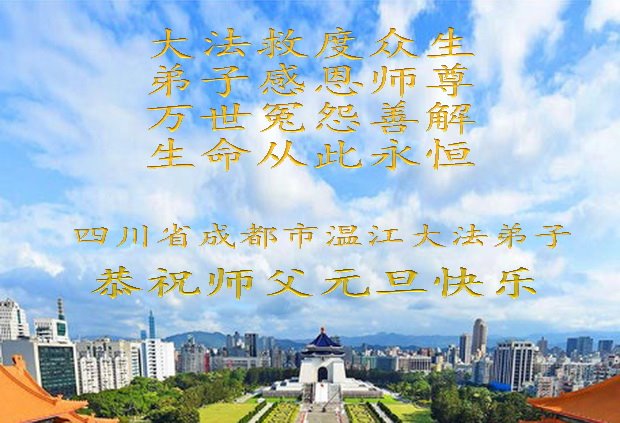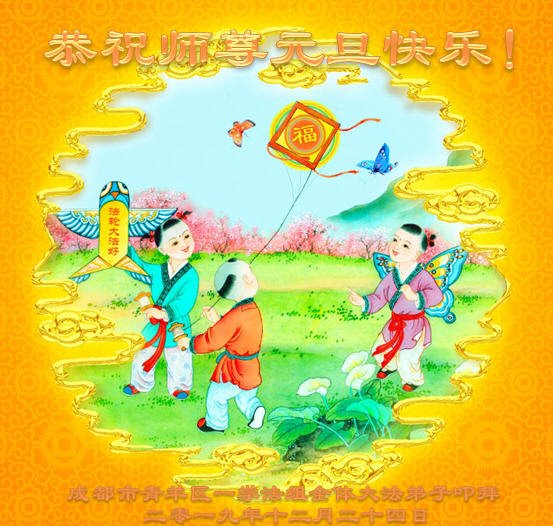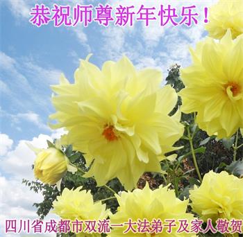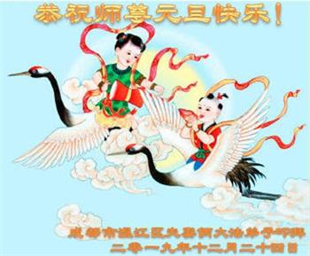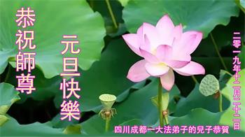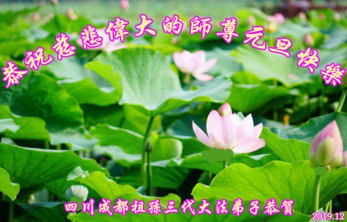 二零二零年新年將至之際,我們中國四川省崇州市全體大法弟子懷著無比崇敬和想念的心情敬祝師父新年快樂!