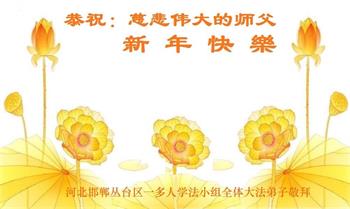 河北邯鄲叢台區一多人學法小組全體大法弟子恭祝慈悲偉大的師父新年快樂!