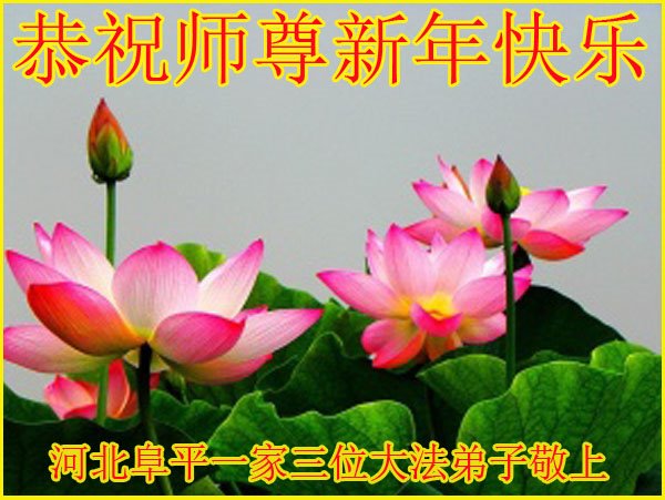 河北阜平一家三位大法弟子恭祝慈悲偉大的師尊新年快樂!