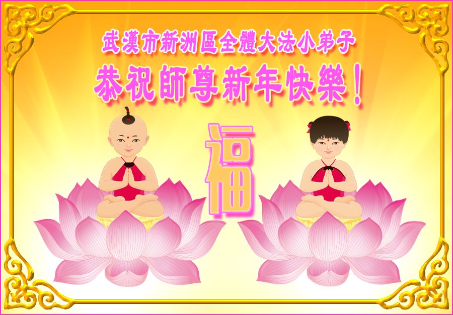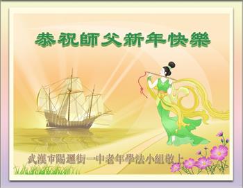 師尊:您好!在此元旦佳節之日,我、母親、妻子和女兒恭祝師尊新年快樂!望中華早日澄清,師尊早日回歸故土。