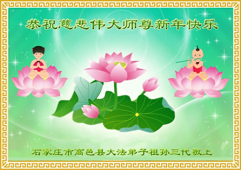 師尊新年好!新的一年弟子要不負師恩,勇猛精進,和家人同修走好師尊安排的修煉之路,和講真相的同修配合好,完成使命,多救人。全家人叩謝師恩!