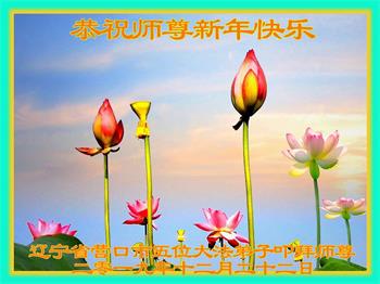 師父您辛苦了!感謝師父這些年一直保護著我們、保護著我們,使我們一直堅定的走到今天。弟子用感恩的心情,再一次恭祝師父新年快樂!弟子們在新的一年裏要修好自己,做好三件事,跟上正法進程,跟師父回家。