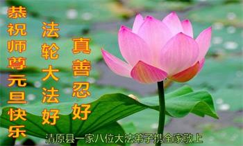 遼寧省撫順市清原縣一家八位大法弟子攜全家人恭祝師尊新年快樂!