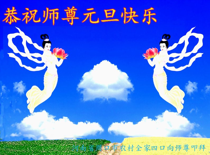 遼寧省一農村大法弟子攜全家恭祝師尊元旦快樂!